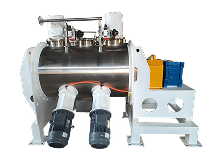 徑向混合(犁刀的作用):當主軸帶動犁刀旋轉時,犁刀會像耕田一樣將物料沿筒壁作徑向圓周湍動,并把物料推向兩側,形成雙向物料流。這不斷更新料面,實現物料的擴散混合和粒子間的摩擦剪切。